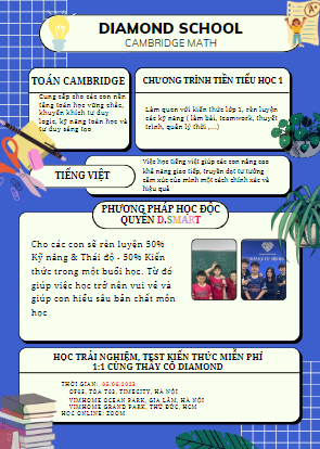 💪Thầy cô Diamond nhận thấy sự quan trọng của toán Cambridge cũng như thấu hiểu nỗi niềm của các con trong môn toán. Thầy cô đã thiết kế một chương trình dạy hết sức kỹ lưỡng, để đảm bảo cho các con có một kiến thức vững chắc và khả năng áp dụng vào thực tế